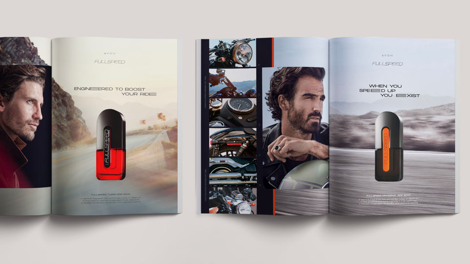 Uma das maiores marcas de perfume masculino da Avon, Full Speed passou por um profundo rebranding. O conceito, que antes colocava a máquina (carro, moto, etc) como centro da história, ficou mais humano: agora, o homem é o protagonista da própria adrenalina.